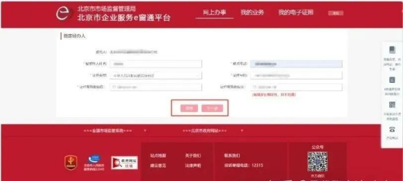 步骤三:输入指定经办人的信息,带星号的项为必填项,完成后点击“保存”并选择“下一步”。